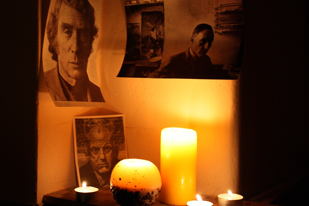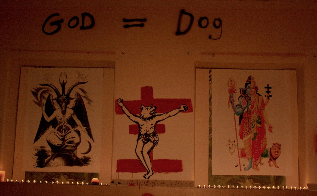 Дорога к Храму (публикация посвящается Conceptualism_inside, fr.Tantum, Tomas, Kim Karsons, E., сделавшим все необходимое) От редакции. Последнее время среди прочего отметилось всплеском интереса к психической юности в наших широтах. Бурление энергий вокруг перевода на русский язык «Thee Psychick Bible» – литературного magnum opus Дженезиса Пи-Орриджа; загадочные «русские TOPY», практически одновременно давшие знать о себе в обоих Вавилонах… даже, казалось бы, не имеющая прямого отношения к нашим реалиям новость о том, что PTV буквально неделю назад вживую сыграли гениальный «Force Thee Hand Ov Chance» вместе с Шоном из «Cult ov Youth» взволновала поклонников Великого Андрогина, воплощения Вселенской Большой Любви и одного из главных магов нашего времени. И вот – еще одно свидетельство о том, что дух старой школы не умер, и даже не улетел домой – он все еще среди нас и продолжает радовать новыми таинственными воплощениями. Ниже мы приводим полный текст письма и, главное, фотоматериалы, пришедшие вчера ровно в 23:23 по вавилонскому времени на почту объединенной редакции. Нам не дано знать, кто их отправитель, подписавшийся столь интригующим образом. Ответов нет, зато есть огромное воодушевление от осознания того, что идеи Джена, Церкви Процесса, «Thee Temple ov Psychick Youth» не только живы в сердцах и умах, но и находят свои зримые воплощения. Итак… — IB Здравствуй, Недорогая, Инсектоидная и в конец Чумная Трансатлантическая, а также Бафомет Тебя Знает Какая Редакция Ктб. Пишу тебе с алтаря самодельного капища Топи в самом сердце Васильевского Острова города Некробурга, не переставая удивляться странным путям Себялюбия Пожирателя Религий. Чувствую, что в такой ситуации (под строгим взглядом Бафомета, под милостивым взором Психического Ардханаришвары, под сколоченным из горелых потолочных досок Психическим Крестом) меня поймешь разве что многоголовое, многоголосое, многоликое ты. Оглядывая преобразившийся пустой и грязный, лишенный даже солнечного света зал в неочевидном месте заброшенной четырехэтажки, я задаюсь пустыми вопросами: почему люди собираются, чтобы добровольно и трудолюбиво выразить делом идеи, требующие поить себя кровью и временем – и что движет теми людьми, и как разжечь то, что ими движет? Как долго они обдумывают свой замысел, кто и что из них желает вложить в общее дело? Какие цели они преследуют, всегда ли удовлетворяются результатом и Процессом? Все эти вопросы сейчас волнуют меня, но я понимаю, что они остаются дрожью на самой поверхности моего разума. Глубоко под этой дрожью скрывается сокровище, знание, полученное из сделанного: лучший жест, на который способен человек, это жест спонтанный, желательно чуждый его личности здесь и сейчас – будь он магический, поэтический или просто личный. Он позволяет сделать шаг прочь от самого себя – и наполнить знанием о себе и Себе столько пространства, сколь широк был шаг (кто знает, может, вся Вселенная может быть покрыта за тот шаг?) И не пустая болтовня, и не анализ и умозаключения относительно себя и мира, сколько угодно хорошо аргументированные, способны подарить это Знание, а только само действие, решительное, резкое – и тихое, внимательное наблюдение за тем, что оно изменит вокруг и внутри. Вокруг меня изменился лишь клочок оставленного людьми пространства, а внутри произошла перемена, каких, быть может, за всю жизнь человека н
