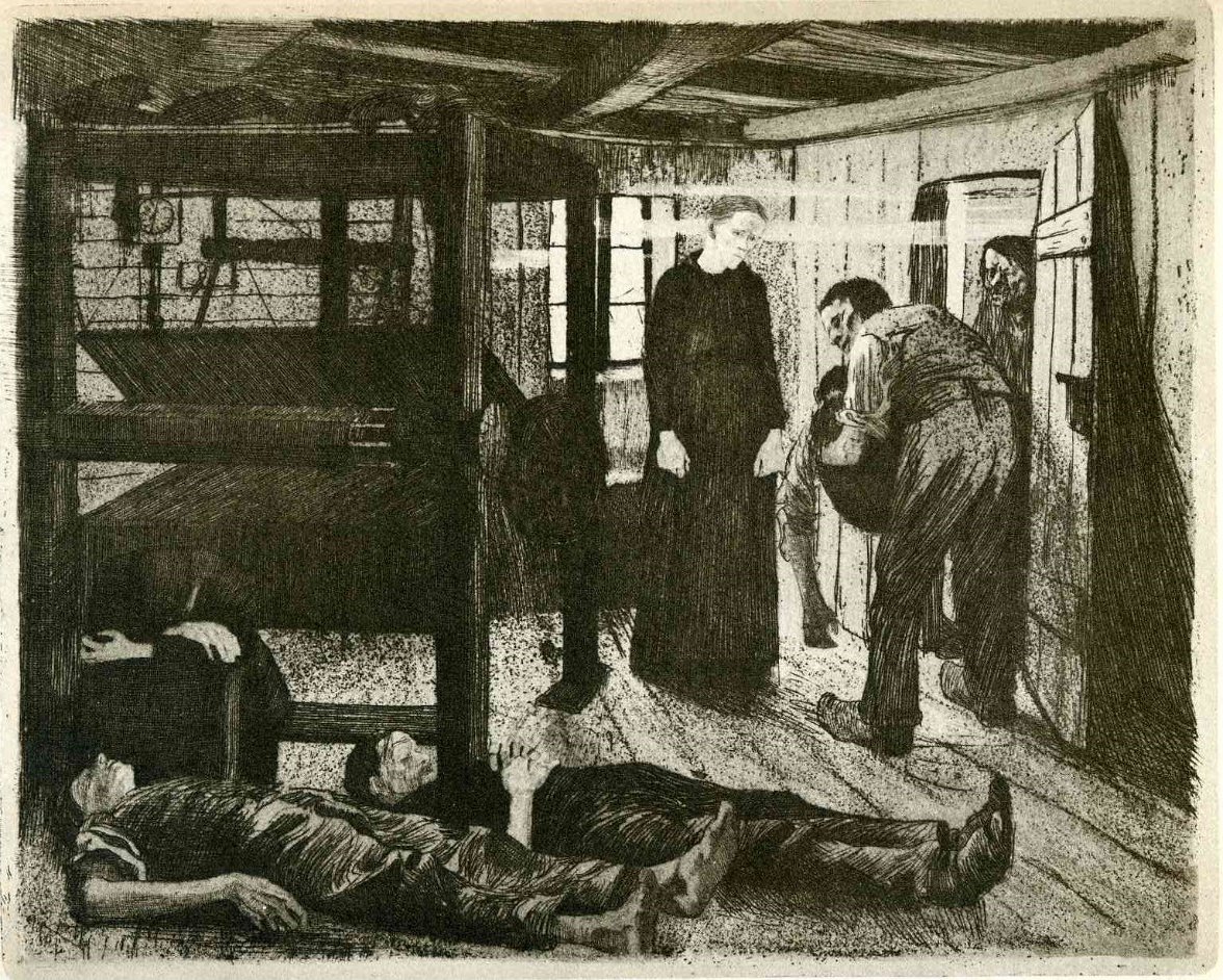 Кете Кольвиц: голос горя Кете Кольвиц (1867—1945 гг.) – немецкая художница и скульптор, прожившая долгую и непростую жизнь, полвека из которой приходилось на активное творчество. Тема смерти интересовала её и в ранние периоды, в 1900‑х годах, но дальнейшие события биографии окончательно определили основную тему её работ. В 1914 году в Первой мировой войне сын Кольвиц попадает на фронт и через два дня там погибает. Отпечаток материнского горя остаётся на десятках офортов, литографий и набросков. В 1940 году во Второй мировой войне на фронте умирают её муж и её внук. Незадолго до собственной смерти Кете Кольвиц, подводя итоги жизни, писала: «Я чувствовала себя «призванной», призванной к действию, которое именно мной, только мной должно быть совершено. И если я сегодня вынуждена выпустить карандаш из рук, то я знаю, что я сделала всё, что было в моих силах». И она действительно сделала. Она зафиксировала Смерть на бумаге. Здесь нет посмертия, нет оправданности происходящего и высокого пафоса. Только чистая экзистенция, проявленность Смерти в бытии здесь-и-сейчас, старый добрый danse macabre. В её мире Война и Голод – тоже не призрачные образы всадников Апокалипсиса, а явленные во плоти фигуры, лишённые романтики и мистического флёра. Персонажи её литографий – это марш обречённых на пути к могиле, за которой ничего не будет. Их объединяет беспомощность перед тем, с чем им пришлось столкнуться и что забрало у них всю живость и всё тепло. Их голос – не голос отдельных личностей, это голос горя, тотального, универсального, без слов понятного носителю любого языка. Смерть проступает насквозь через живых людей: в контурах измождённых лиц, в провалах глазниц, в восковой смазанности черт. На работах Кете Кольвиц – формально ещё живые, но по сути прижизненно мёртвые матери мёртвых или умирающих детей, по-паучьи скукожившиеся вокруг них в бессильной попытке защитить. Горе, изрезавшее лицо морщинами так, что невозможно понять, какого возраста женщина изображена на рисунке. Чёрные пятна вместо глаз или же белесые глаза, похожие на помутневшие глаза покойников. На её работах – чистое беспросветное отчаяние на своём пике, ничем не разбавленная боль и бесконечная усталость. Никакого благородного смирения, только оцепенение и апатия. Страдание первично, оно перекрывает собой индивидуальность человека. Ужас первичен, он побеждает разум. No tomorrow, no tomorrow. « ‹ из 48 › » Просмотры: 21 Навигация по записям «Between Spaces»: Месса АссасиновЭнцефалограмма: хорошая, плохая, твоя, или ритмы мозга и как их готовить Добавить комментарий Отменить ответВаш адрес email не будет опубликован. Обязательные поля помечены *Комментарий * Имя * Email * Сайт Сохранить моё имя, email и адрес сайта в этом браузере для последующих моих комментариев.