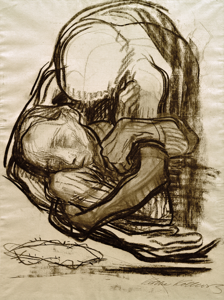 Кете Кольвиц: голос горя Кете Кольвиц (1867—1945 гг.) – немецкая художница и скульптор, прожившая долгую и непростую жизнь, полвека из которой приходилось на активное творчество. Тема смерти интересовала её и в ранние периоды, в 1900‑х годах, но дальнейшие события биографии окончательно определили основную тему её работ. В 1914 году в Первой мировой войне сын Кольвиц попадает на фронт и через два дня там погибает. Отпечаток материнского горя остаётся на десятках офортов, литографий и набросков. В 1940 году во Второй мировой войне на фронте умирают её муж и её внук. Незадолго до собственной смерти Кете Кольвиц, подводя итоги жизни, писала: «Я чувствовала себя «призванной», призванной к действию, которое именно мной, только мной должно быть совершено. И если я сегодня вынуждена выпустить карандаш из рук, то я знаю, что я сделала всё, что было в моих силах». И она действительно сделала. Она зафиксировала Смерть на бумаге. Здесь нет посмертия, нет оправданности происходящего и высокого пафоса. Только чистая экзистенция, проявленность Смерти в бытии здесь-и-сейчас, старый добрый danse macabre. В её мире Война и Голод – тоже не призрачные образы всадников Апокалипсиса, а явленные во плоти фигуры, лишённые романтики и мистического флёра. Персонажи её литографий – это марш обречённых на пути к могиле, за которой ничего не будет. Их объединяет беспомощность перед тем, с чем им пришлось столкнуться и что забрало у них всю живость и всё тепло. Их голос – не голос отдельных личностей, это голос горя, тотального, универсального, без слов понятного носителю любого языка. Смерть проступает насквозь через живых людей: в контурах измождённых лиц, в провалах глазниц, в восковой смазанности черт. На работах Кете Кольвиц – формально ещё живые, но по сути прижизненно мёртвые матери мёртвых или умирающих детей, по-паучьи скукожившиеся вокруг них в бессильной попытке защитить. Горе, изрезавшее лицо морщинами так, что невозможно понять, какого возраста женщина изображена на рисунке. Чёрные пятна вместо глаз или же белесые глаза, похожие на помутневшие глаза покойников. На её работах – чистое беспросветное отчаяние на своём пике, ничем не разбавленная боль и бесконечная усталость. Никакого благородного смирения, только оцепенение и апатия. Страдание первично, оно перекрывает собой индивидуальность человека. Ужас первичен, он побеждает разум. No tomorrow, no tomorrow. “Der Tod nimmt eine Frau zu sich”,1921/22.Kohle, 575 × 328 mm.Copyright: akg-imagesOrientation: 1 « ‹ из 48 › » Просмотры: 97 Навигация по записям «Between Spaces»: Месса АссасиновЭнцефалограмма: хорошая, плохая, твоя, или ритмы мозга и как их готовить Добавить комментарий Отменить ответВаш адрес email не будет опубликован. Обязательные поля помечены *Комментарий * Имя * Email * Сайт Сохранить моё имя, email и адрес сайта в этом браузере для последующих моих комментариев.