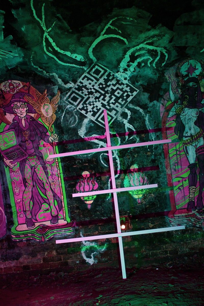 Новая дорога к старому Храму От Редакции. За шесть дней, прошедших с момента Инаугурации Психоактивного Капища, многим конфидентам удалось таки до него добраться – и это радует. Настало время рассказать об этом большом и важном проекте. Четыре с половиной года назад нам на почту пришло странное письмо, содержащее любопытные размышления о Духе и Процессе, а также фотоотчет о сооружении в неком городе Некробурге Капища психической юности – с Ардханаришварой, Бафометом, здоровенным крестом и психическим телевидением. Местоположение не указывалось, но нескольких явно специально оставленных в письме зацепок было достаточно, чтобы понять, о какой именно заброшенной четырехэтажке на В.О. шла речь. С тех пор многие конфиденты и члены Редакции успели побывать на этом Капище. Со временем оно было разрушено и теперь уже окончательно закрыто. Каково же было наше удивление, когда спустя столько времени нам пришло еще одно письмо – также в 23:23, также с выспренним размышлением и фотоотчетом. В этот раз, правда, не летом, а перед наступлением холодов. Ниже мы приводим полный текст письма вместе с фотоматериалами, отснятыми нами после посещения Капища. Как и в прошлый раз, нам остается только гадать, кто ответственен за это Капище. В прошлый раз версий было много: от конфидентов, готовящихся к оккультному ренессансу, до глубоко законспирированной структуры внутри самой «Катабазии»… Теперь ни одна из этих версий не кажется нам убедительной; в новом письме, как и в старом, есть список строителей – но почти все они с тех пор сменились. Зато Храм, кажется, остался прежним. fr.Chmn Занимательно зрелище разоренного храма, который ты сам устраивал. Похоже на труп друга – лицо вроде то же, а вот друг… Кто-то скажет, что не стало, кто-то что просто не здесь. С капищем проще: вот оно разорено – и вот оно снова явлено. Совершенно иное, сделанное другими людьми, на другом уровне исполнения, в совершенно ином месте… И все то же – памятник всепобеждающей психической юности; как и в прошлый раз, формула мятежного Духа, вошедшего в плоть реальности вопреки условностям, запретам, рутине и элементарной вероятности. Хотя, конечно, по уровню исполнения и сложности старое новому в подметки не годится. Живописное историческое место, впрочем, не оцененное современниками; много недель тяжелого кропотливого труда, СПЕЦИАЛЬНЫЕ ТЕХНОЛОГИИ, ведра пота многих людей и удивительные открытия с некоторыми даже потерями в процессе. Однако это вновь – место мифопоэтической персонализации того, что каждый из участников изволил привести сюда. Четыре главные фигуры вокруг креста – похожи на божественные, но по сути скорее героические: обоеполая Богинюшка и бесполый психический Андрогин, Иерофант, Жрица – пробужденные души современности, и их ты, может быть, уже не раз встречал, закутанных в лохмотья разнообразных человеков. У их ног горят немеркнущие огни Психического телевидения – его провели и сюда. Оседлавшая Зверя стигматизации Бабалон, не расстающаяся с чашей мерзостей, и краснорожий Архонт – самые крупные фигуры, но тоже не божественные, скорее титанические – стихийные и в чистом своем виде скорее дурные, но, увы, как никогда актуальные. В одном углу – алхимик, смешивающий гремучие смеси – наша символическая дань истинному королевскому Искусству; в другом занимаются пор