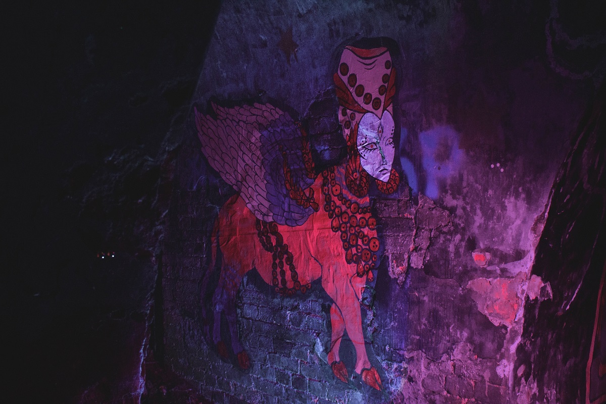 Новая дорога к старому Храму От Редакции. За шесть дней, прошедших с момента Инаугурации Психоактивного Капища, многим конфидентам удалось таки до него добраться – и это радует. Настало время рассказать об этом большом и важном проекте. Четыре с половиной года назад нам на почту пришло странное письмо, содержащее любопытные размышления о Духе и Процессе, а также фотоотчет о сооружении в неком городе Некробурге Капища психической юности – с Ардханаришварой, Бафометом, здоровенным крестом и психическим телевидением. Местоположение не указывалось, но нескольких явно специально оставленных в письме зацепок было достаточно, чтобы понять, о какой именно заброшенной четырехэтажке на В.О. шла речь. С тех пор многие конфиденты и члены Редакции успели побывать на этом Капище. Со временем оно было разрушено и теперь уже окончательно закрыто. Каково же было наше удивление, когда спустя столько времени нам пришло еще одно письмо – также в 23:23, также с выспренним размышлением и фотоотчетом. В этот раз, правда, не летом, а перед наступлением холодов. Ниже мы приводим полный текст письма вместе с фотоматериалами, отснятыми нами после посещения Капища. Как и в прошлый раз, нам остается только гадать, кто ответственен за это Капище. В прошлый раз версий было много: от конфидентов, готовящихся к оккультному ренессансу, до глубоко законспирированной структуры внутри самой «Катабазии»… Теперь ни одна из этих версий не кажется нам убедительной; в новом письме, как и в старом, есть список строителей – но почти все они с тех пор сменились. Зато Храм, кажется, остался прежним. fr.Chmn Занимательно зрелище разоренного храма, который ты сам устраивал. Похоже на труп друга – лицо вроде то же, а вот друг… Кто-то скажет, что не стало, кто-то что просто не здесь. С капищем проще: вот оно разорено – и вот оно снова явлено. Совершенно иное, сделанное другими людьми, на другом уровне исполнения, в совершенно ином месте… И все то же – памятник всепобеждающей психической юности; как и в прошлый раз, формула мятежного Духа, вошедшего в плоть реальности вопреки условностям, запретам, рутине и элементарной вероятности. Хотя, конечно, по уровню исполнения и сложности старое новому в подметки не годится. Живописное историческое место, впрочем, не оцененное современниками; много недель тяжелого кропотливого труда, СПЕЦИАЛЬНЫЕ ТЕХНОЛОГИИ, ведра пота многих людей и удивительные открытия с некоторыми даже потерями в процессе. Однако это вновь – место мифопоэтической персонализации того, что каждый из участников изволил привести сюда. Четыре главные фигуры вокруг креста – похожи на божественные, но по сути скорее героические: обоеполая Богинюшка и бесполый психический Андрогин, Иерофант, Жрица – пробужденные души современности, и их ты, может быть, уже не раз встречал, закутанных в лохмотья разнообразных человеков. У их ног горят немеркнущие огни Психического телевидения – его провели и сюда. Оседлавшая Зверя стигматизации Бабалон, не расстающаяся с чашей мерзостей, и краснорожий Архонт – самые крупные фигуры, но тоже не божественные, скорее титанические – стихийные и в чистом своем виде скорее дурные, но, увы, как никогда актуальные. В одном углу – алхимик, смешивающий гремучие смеси – наша символическая дань истинному королевскому Искусству; в другом занимаются пор