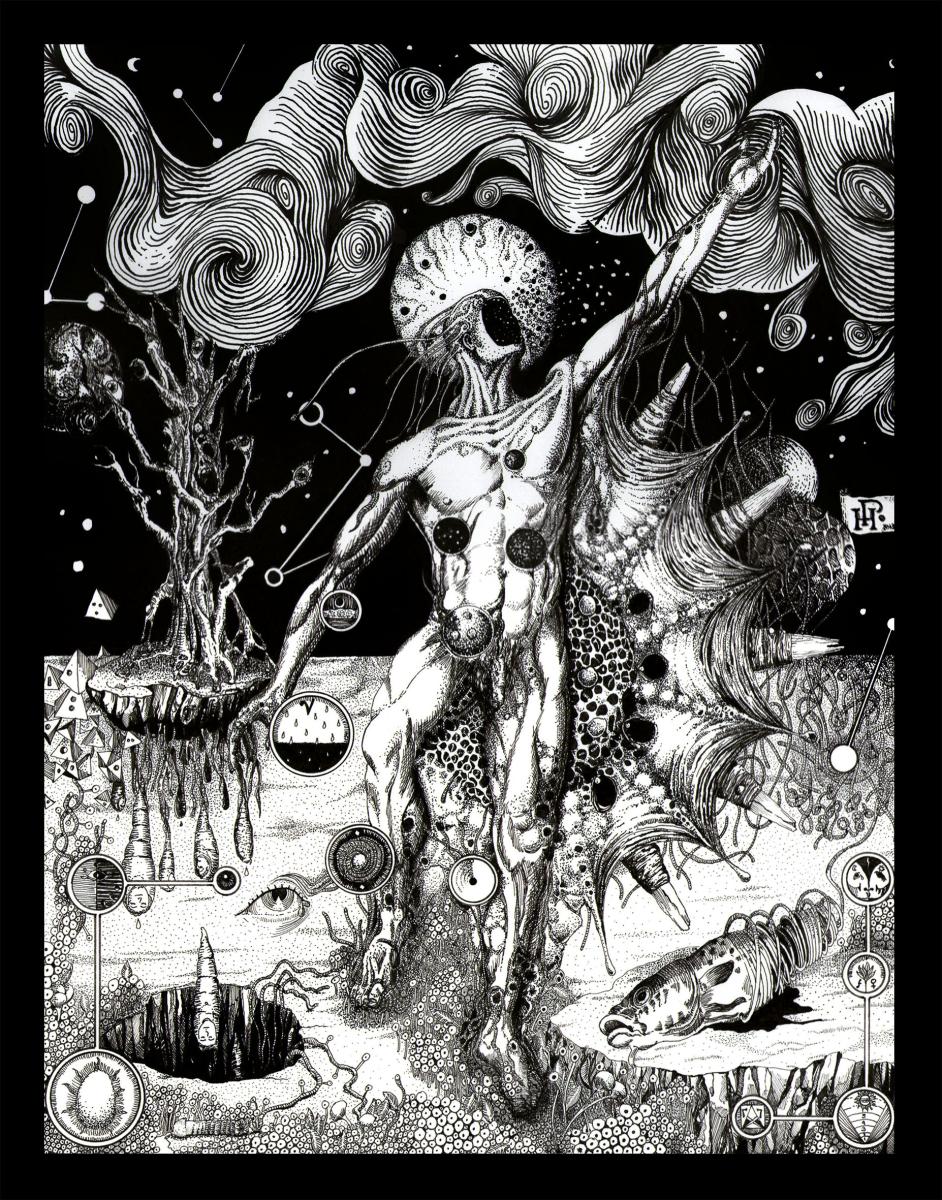 Нефилимы и майя Гектора Пинеды «Четыре нефилима: нежданное вторжение в человеческое познание», «Лилит», «Охотница и её сокровищница», «Ложь» — мексиканский художник и «тёмный сюрреалист» Гектор Пинеда весьма заинтересован в оккультных и мистических темах. Он никогда не высказывался об этом (да и вообще упоминаний о нём в сети кот наплакал), но на его рисунках можно отыскать и тетраграмматон, и руны, и сигилы, и отсылки к герметическим символам (и немножко — к гравюрам Дюрера). Сам он сообщает, что в творчестве отталкивается от особого впечатления, возникающего при соединении противоположностей: желания и отвращения, красоты и насилия, жизни и смерти. Пинеда рисует карандашом и чернилами, делает коллажи, иногда занимается диджитал-артом и фотографией. Он получил образование фармацевта, а потом десять лет работал в логистике — но от судьбы, видимо, не уйдешь. И это прекрасно: только посмотрите на милашку Адика на ручках у Трумпи! « ‹ из 38 › » Просмотры: 68 Навигация по записям «Книга Лжей» Ричарда Метцгера, глава 33: Медийное проклятье Хаким Бея Добавить комментарий Отменить ответВаш адрес email не будет опубликован. Обязательные поля помечены *Комментарий * Имя * Email * Сайт Сохранить моё имя, email и адрес сайта в этом браузере для последующих моих комментариев.