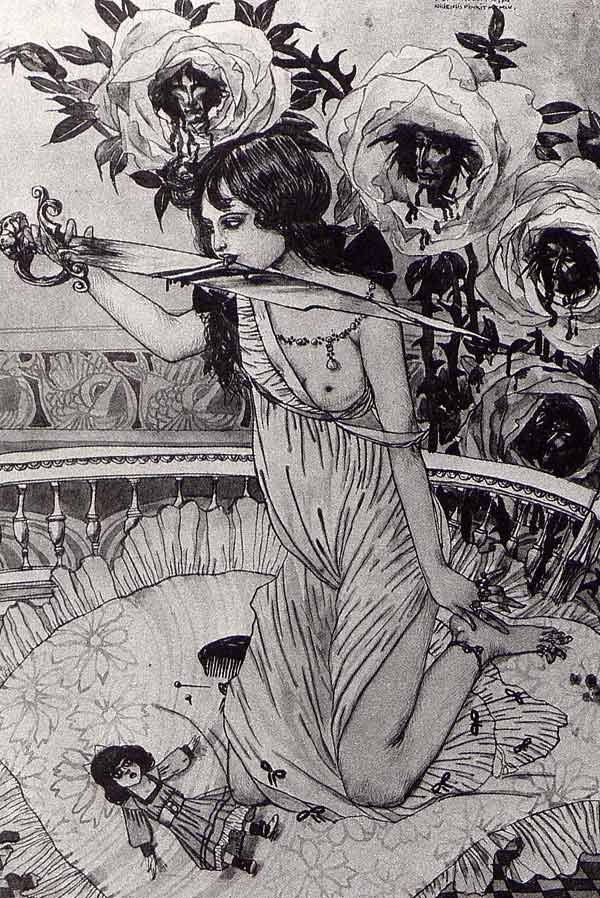 Образы чудовищ: символизм Густава-Адольфа Мосса В самых сильных картинах французского символиста Густава-Адольфа Мосса правит мизогиния — и безнадежная очарованность. Его кошмарные соблазнительные дивы, властные, перемазанные кровью жертв, держащие окровавленные мечи или возлежащие на горах трупов, сияют неземной привлекательностью — невозможно отвести взгляд. Венец этой темы, картина «Она» — образ богини-великанши, на нимбе которой можно прочесть изречение Ювенала: «Hoc volo, sic jubeo: sit pro ratione voluntas» — «Я этого хочу, так я велю: пусть доводом будет моя воля», а на бедрах увидеть сотни кровавых отпечатков мелких мужских ладошек тех, кто изнемогает под её тяжестью. И таких «портретов» у Мосса много: тут и Юдифь, и Саломея, и когтистая сирена, всех не перечислить. Интересно, что многие мифологические персонажи при этом переосмыслены в современной художнику эстетике: изящная Юдифь кладёт отрубленную голову Олоферна в элегантную расшитую жемчугом дамскую сумочку, а Елена Прекрасная, целующая обреченного Париса, одета в соболя и золотое шитье. Кроме символистских полотен Мосса создавал акварельные пейзажи, занимался оформлением карнавала в Ницце и иллюстрировал книги; вообще же предпочитал определять свои работы как деко-арт и ново-арт. Немалую часть своего наследия создал под влиянием Гюстава Моро и, видимо, Шарля Бодлера. « ‹ из 40 › » Просмотры: 216 Навигация по записям Мифология мух и Бесконечное Саморассеяние: «MIND IS HOUSE» Владимира ВайсаОб изгнании: «Нуучча» Добавить комментарий Отменить ответВаш адрес email не будет опубликован. Обязательные поля помечены *Комментарий * Имя * Email * Сайт Сохранить моё имя, email и адрес сайта в этом браузере для последующих моих комментариев.