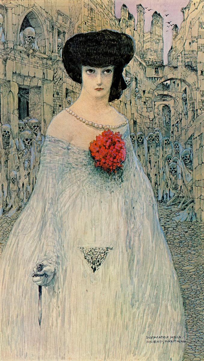 Образы чудовищ: символизм Густава-Адольфа Мосса В самых сильных картинах французского символиста Густава-Адольфа Мосса правит мизогиния — и безнадежная очарованность. Его кошмарные соблазнительные дивы, властные, перемазанные кровью жертв, держащие окровавленные мечи или возлежащие на горах трупов, сияют неземной привлекательностью — невозможно отвести взгляд. Венец этой темы, картина «Она» — образ богини-великанши, на нимбе которой можно прочесть изречение Ювенала: «Hoc volo, sic jubeo: sit pro ratione voluntas» — «Я этого хочу, так я велю: пусть доводом будет моя воля», а на бедрах увидеть сотни кровавых отпечатков мелких мужских ладошек тех, кто изнемогает под её тяжестью. И таких «портретов» у Мосса много: тут и Юдифь, и Саломея, и когтистая сирена, всех не перечислить. Интересно, что многие мифологические персонажи при этом переосмыслены в современной художнику эстетике: изящная Юдифь кладёт отрубленную голову Олоферна в элегантную расшитую жемчугом дамскую сумочку, а Елена Прекрасная, целующая обреченного Париса, одета в соболя и золотое шитье. Кроме символистских полотен Мосса создавал акварельные пейзажи, занимался оформлением карнавала в Ницце и иллюстрировал книги; вообще же предпочитал определять свои работы как деко-арт и ново-арт. Немалую часть своего наследия создал под влиянием Гюстава Моро и, видимо, Шарля Бодлера. « ‹ из 40 › » Просмотры: 218 Навигация по записям Мифология мух и Бесконечное Саморассеяние: «MIND IS HOUSE» Владимира ВайсаОб изгнании: «Нуучча» Добавить комментарий Отменить ответВаш адрес email не будет опубликован. Обязательные поля помечены *Комментарий * Имя * Email * Сайт Сохранить моё имя, email и адрес сайта в этом браузере для последующих моих комментариев.