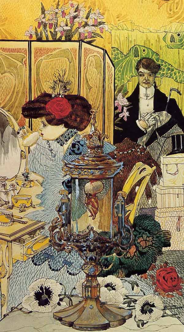 Образы чудовищ: символизм Густава-Адольфа Мосса В самых сильных картинах французского символиста Густава-Адольфа Мосса правит мизогиния — и безнадежная очарованность. Его кошмарные соблазнительные дивы, властные, перемазанные кровью жертв, держащие окровавленные мечи или возлежащие на горах трупов, сияют неземной привлекательностью — невозможно отвести взгляд. Венец этой темы, картина «Она» — образ богини-великанши, на нимбе которой можно прочесть изречение Ювенала: «Hoc volo, sic jubeo: sit pro ratione voluntas» — «Я этого хочу, так я велю: пусть доводом будет моя воля», а на бедрах увидеть сотни кровавых отпечатков мелких мужских ладошек тех, кто изнемогает под её тяжестью. И таких «портретов» у Мосса много: тут и Юдифь, и Саломея, и когтистая сирена, всех не перечислить. Интересно, что многие мифологические персонажи при этом переосмыслены в современной художнику эстетике: изящная Юдифь кладёт отрубленную голову Олоферна в элегантную расшитую жемчугом дамскую сумочку, а Елена Прекрасная, целующая обреченного Париса, одета в соболя и золотое шитье. Кроме символистских полотен Мосса создавал акварельные пейзажи, занимался оформлением карнавала в Ницце и иллюстрировал книги; вообще же предпочитал определять свои работы как деко-арт и ново-арт. Немалую часть своего наследия создал под влиянием Гюстава Моро и, видимо, Шарля Бодлера. « ‹ из 40 › » Просмотры: 177 Навигация по записям Мифология мух и Бесконечное Саморассеяние: «MIND IS HOUSE» Владимира ВайсаОб изгнании: «Нуучча» Добавить комментарий Отменить ответВаш адрес email не будет опубликован. Обязательные поля помечены *Комментарий * Имя * Email * Сайт Сохранить моё имя, email и адрес сайта в этом браузере для последующих моих комментариев.